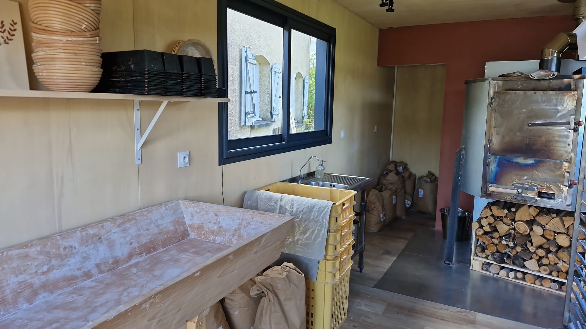 Aurélie s’est lancée dans une belle reconversion professionnelle en tant que boulangère de pains bio au levain. Après avoir travaillé pour un autre boulanger installé dans une tiny-house mobile elle à décidé de s’offrir un local sur le même principe mais plus spacieux accolé à sa maison d’habitation pour pouvoir se lancer à son compte.
